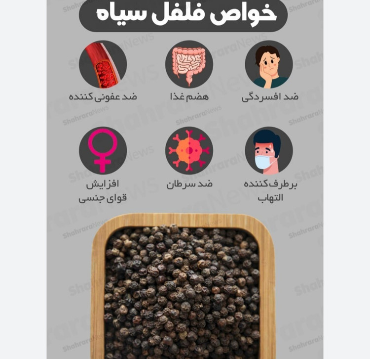دانه فلفل سیاه طعم دهنده غذا ضد افسردگی هضم کننده قوی ضد سرطان افزایش قوای جنسی